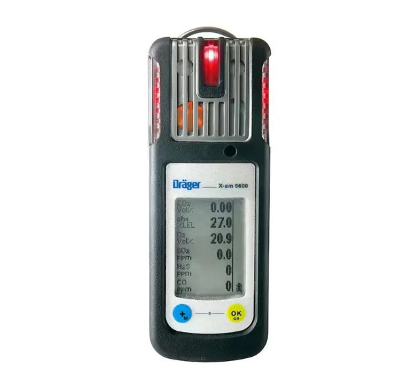 The Dräger X-am 5600 is a compact, advanced multi-gas detector capable of monitoring up to six gases simultaneously. Designed with infrared (IR) sensor technology, it provides accurate detection of combustible and toxic gases, carbon dioxide (CO2), hydrogen, and oxygen levels. Its lightweight, ergonomic design and two-button interface make it easy to use for extended periods, even in harsh industrial environments.