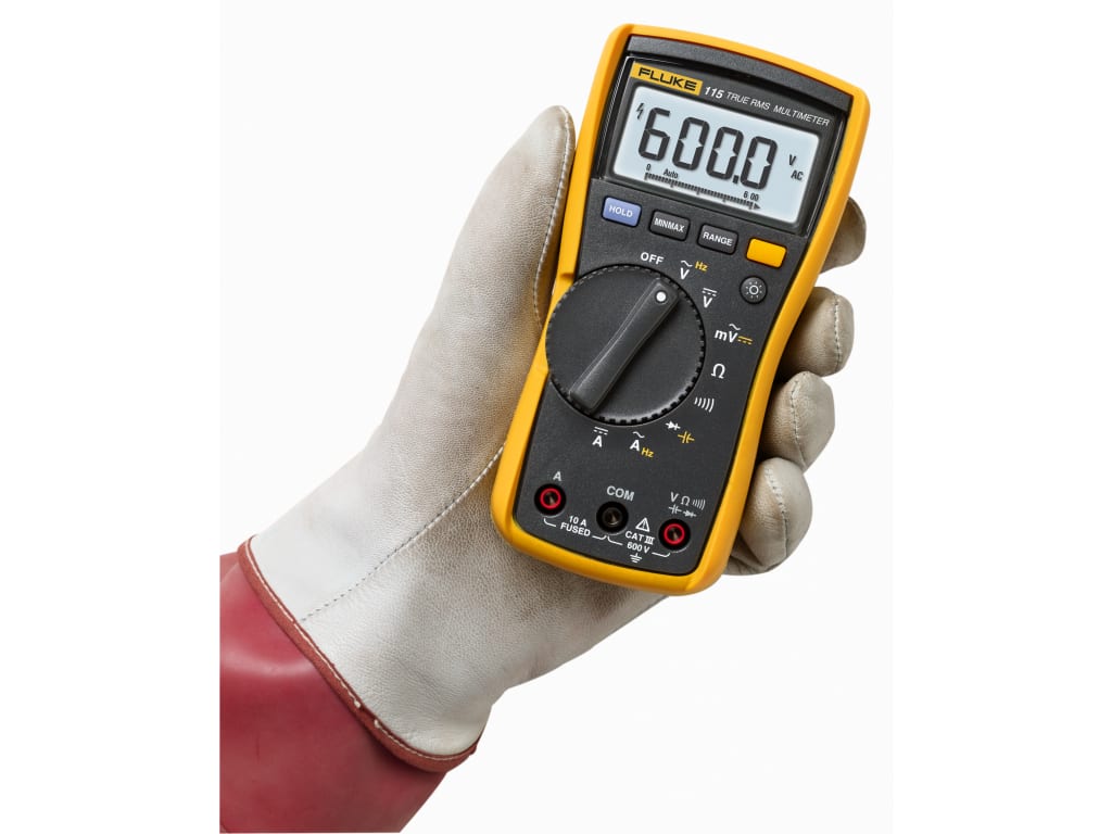 The Fluke 115 field technician’s digital multimeter measures True-RMS voltage and current, as well as resistance, continuity, frequency, and capacitance, to meet the needs of a wide variety of field service technicians.