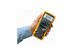 This multimeter offers accurate measurements for voltage, current, resistance, frequency, capacitance, and continuity, with 0.3% DC accuracy, Min/Max recording, and both auto/manual ranging. A dependable tool for technicians handling electrical and electronic troubleshooting.