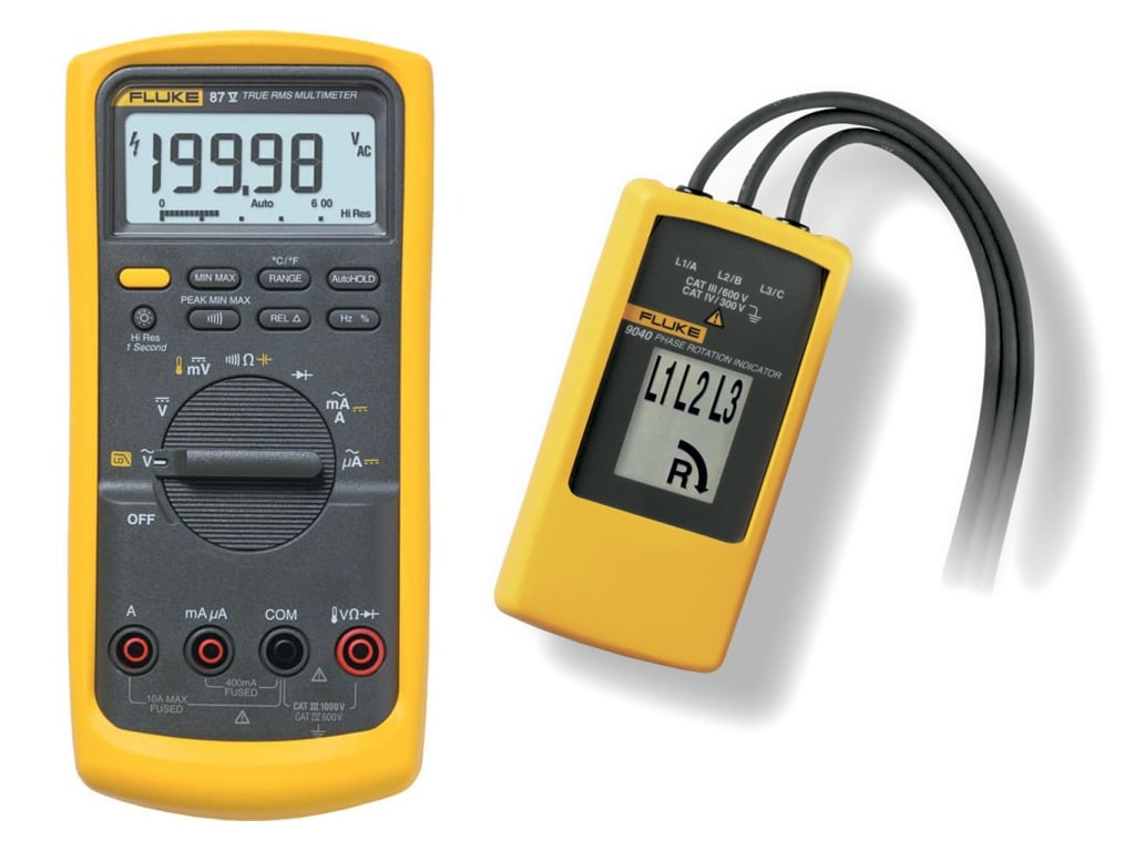 - Package includes Fluke 87-5 Digital Multimeter (87-V) and 9040 Phase Rotation Indicator Meter